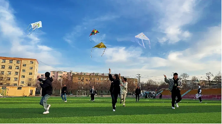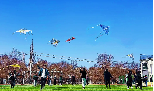 同学们在学生会组织者的带领下放飞绘制好的风筝,肆意奔跑,脸上洋溢着喜悦,锦鲤、福娃、鹏鸟等各式各样、千姿百态的风筝把天空装点得格外瑰丽,五彩斑斓的风筝在蓝天白云下翩翩起舞,构成了一道道亮丽的风景线。大家纷纷忙着收线、抖线、放线,尽情享受美好春光,展现青年风采,尽显青春活力!走出宿舍,走下网络,走向操场,在绿茵场上,放飞多彩的风筝,放飞激情与梦想!