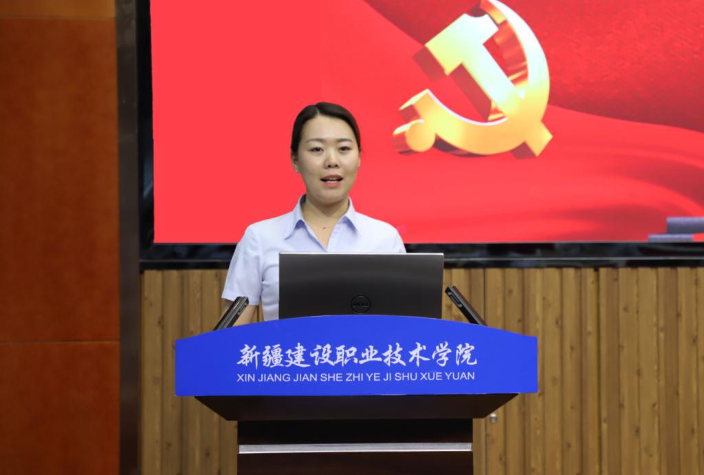 马克思主义学院教师张悦代表全体学员发言,她说作为一名积极向党组织靠拢的青年教师,要保持蓬勃向上、意气风发的精神紧密团结在党中央周围,立足教育岗位、解放思想、创新观念,践行教书育人的职业操守,把用心工作细化到批教备辅的每个环节,把立德树人的根本任务放在教育的重中之重,做一个政治强、情怀深、思维新、视野广、自律严、人格正的新时代高校教师。更好地为党的建设、新疆的社会稳定和长治久安、学院的发展做出应有的贡献。