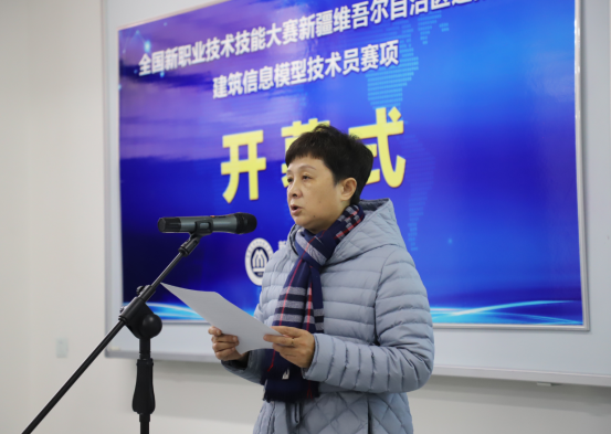 为充分发挥职业技能竞赛在促进技能人才培养、推动职业技能培训和弘扬工匠精神的重要作用,打造新时代技能人才培养的新品牌,全面贯彻落实习近平总书记对技能人才工作的系列重要指示和致首届全国职业技能大赛贺信精神,更好地在全社会弘扬劳模精神、劳动精神、工匠精神,激励广大青年走技能成才、技能报国之路,培养更多高素质劳动者和高技能人才,为决胜全面建成小康社会、巩固脱贫攻坚作出新的贡献,全国新职业技术技能大赛新疆维吾尔自治区选拔赛建筑信息模型技术员赛项于11月21日在我院开幕。开幕式由学院教务处处长余冬贞主持。