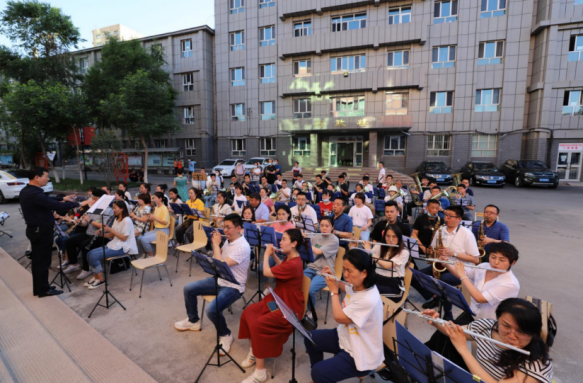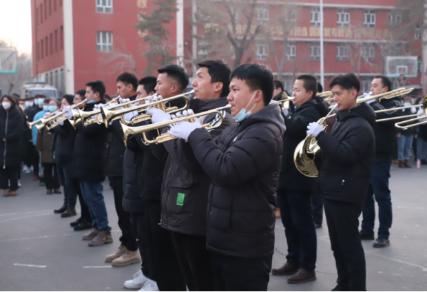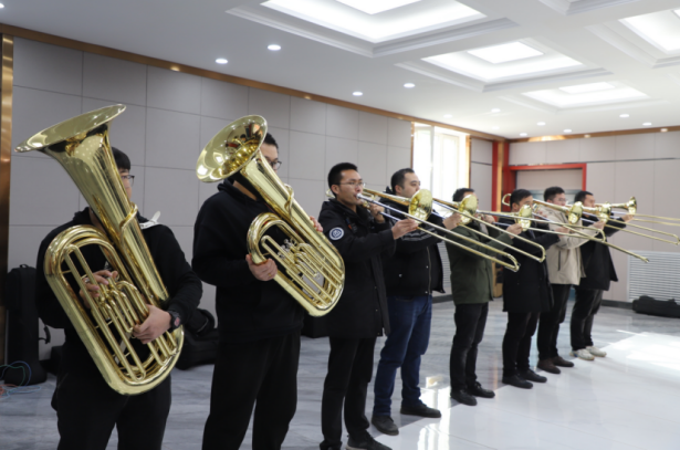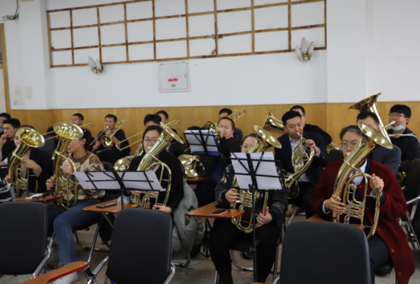 2021年5月27日,管乐团第一次集中排练,一曲《没有共产党就没有新中国》在校园上空响起,引来来往师生驻足观看,并赢得阵阵掌声,而这时离大家正式学习管乐还不到一个月。