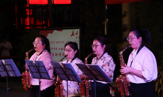 教师管乐团成员带来萨克斯小合奏《美丽的草原我的家》和《走过咖啡屋》