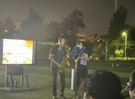 (石建平副院长表演萨克斯独奏、马春波老师带来歌曲)