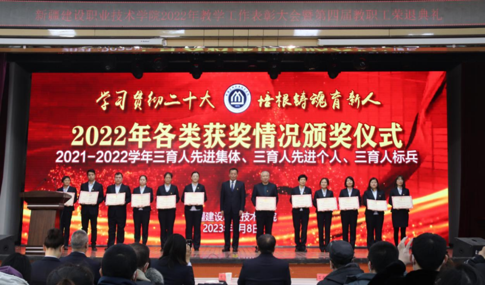 为2021-2022学年三育人先进集体、三育人先进个人、三育人标兵颁奖。