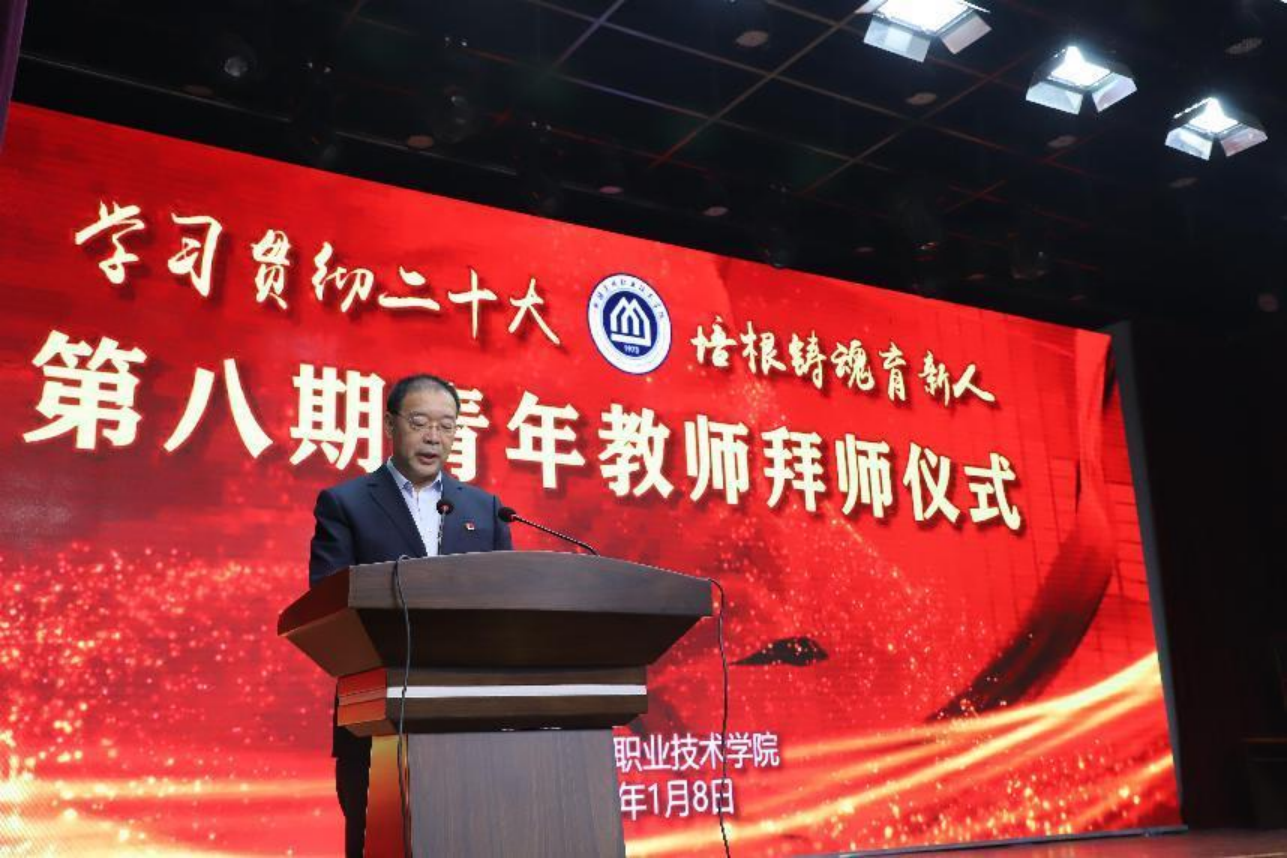 为第八期青年教师培养导师颁发了聘书。在拜师仪式上, 第八期青年教师上台,为导师献花,导师们将精心准备的礼物回赠给徒弟们。献上鲜花、恭敬鞠躬、行拜师礼……全场致以热烈的掌声,共同见证这一意义非凡的美好时刻。