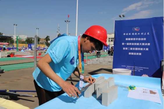 赛场小“匠”们也一展风采,青春的气息、自信的面庞,青年“小匠”们在赛场上传承技能,撑起技能人才队伍的未来。来自我院的艾科拜尔·穆合塔尔和艾合麦提·吾甫尔参加了砌筑项目的比赛。