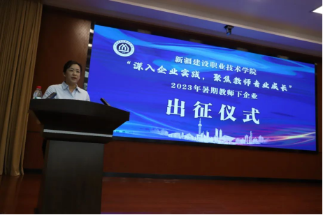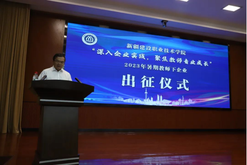 中建新疆建工(集团)有限公司科技质量部副总经理张晔及该公司各项目负责人,学院党委班子成员、参加暑期研修活动的教师参加启动仪式。