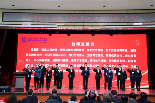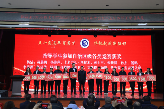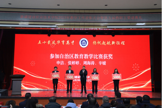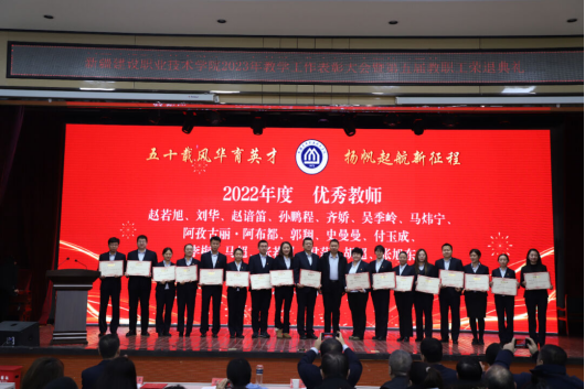 五十载风华育英才,扬帆起航新征程。1月12日, taptap点点体育2023年教学工作表彰大会暨第五届教职工荣退典礼在建材校区礼堂隆重举行。回顾总结学院过去一年的教学工作,表彰学院教学工作中涌现出来的先进集体和先进个人,并以最真挚的情谊欢送荣退的老师、同事,切实营造尊师重教的浓厚氛围,进一步弘扬尊师重教的优良传统,以榜样的力量引领学院师德师风建设,激励广大教职工进一步增强工作的责任感和使命感,开拓创新、勇争一流,努力为学院高质量发展作出积极贡献。