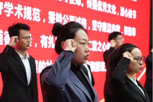 年轻的面庞,蓬勃的朝气,新入职的教师们将铭记誓言,牢固树立立德树人根本任务,坚守“师者初心,传承知行合一”理念。