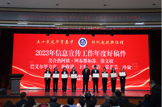 表彰大会共计表彰教职工约300余人次,对学院“优秀教师”“先进工作者”“优秀辅导员”“优秀党员”“先进工会小组、工会积极分子、优秀工会干部”“优秀信息员、年度好稿件作者”“优秀班主任”“校庆先进个人”等教职工进行表彰。正是因为拥有像这样爱校如家、爱生如子、无私奉献、可爱可敬的教师群体,才得以汇集学院高质量发展的奋进之力,他们是过去一年在学院事业发展中的优秀代表,他们立德树人,潜心教学,以身治教,用实际行动传承着建院的精神传统,用辛勤耕耘续写着教书育人的动人篇章。