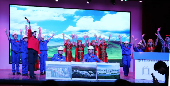 工程管理学院党支部学生表演的情景剧《普通话之旅·新疆之韵》,讲述了导游阿斯木古丽,努力学习国家通用语言,向游客们介绍大美新疆,用普通话这把钥匙,打开了与广阔世界对话的大门。