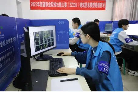 建筑信息模型建模赛项选手凭借空间想象力和软件操作能力,构建出一个个逼真的建筑模型,展示出对未来建筑的独特理解。