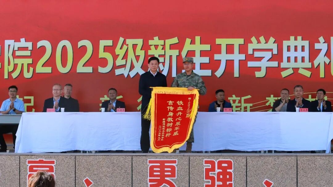 晴空万里、秋风送爽。9月29日上午,学院2025级新生开学典礼暨军训总结表彰大会在城建校区举行,参训新生英姿飒爽地展示军训成果,展现建院学子昂扬向上的精神风貌。学院党委书记蓝盛新,党委委员、纪委书记李汶革,党委委员、副院长叶尔博力·沙丁,承训部队领导及教官出席大会。大会由党委副书记秦拥军主持。