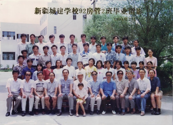 (2014年,陆易农副校长与房管92-2班、92-4班学生毕业30年合影)