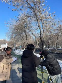 寒风凛冽的新疆二月,零下十几度的低温中,一群年轻人正全神贯注地进行测量训练。呼出的白气在睫毛上凝结成霜,手指冻得通红却依然精准地记录着每一个数据——这就是建筑工程学院地理空间采集与处理赛项团队备战2025年新疆职业院校技能大赛的日常剪影。
