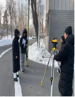 当其他同学还在享受寒假温暖时,建筑工程学院的测量团队早已在冰天雪地里架起了全站仪。李莲、张琼两位老师带领孟硕、张佳欣、别秉鑫、刘潞组成的四人小队,为2025年新疆职业院校技能大赛地理空间采集与处理赛项做着最后的冲刺。“水准测量时,我们的手冻得不听使唤,戴了两层手套手指仍然被冻僵,只能搓一搓。”孟硕同学回忆道,测量对体能要求很高,跑步既可以取暖,也可以增强体能,一起训练的日子也成为了团队冬日里最温暖的记忆。从晨曦初露到星辉满天,训练场上的脚印见证着他们精益求精的执着。