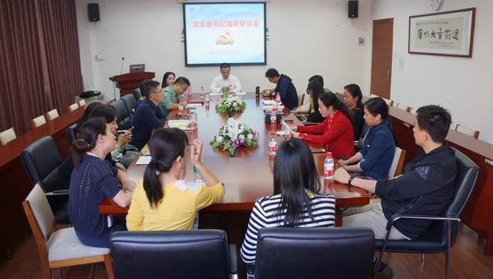 本网讯 为了贯彻落实党的十九大精神,进一步推动全面从严治党向基层延伸,促进基层党组织建设全面进步、全面过硬,不断提高党支部书记的综合素质和业务能力,根据“不忘初心、牢记使命”主题教育安排和实际工作需要,11月14日下午,英文学院举行了“不忘初心、牢记使命”主题教育党支部书记述职评议会。教工党支部书记述职会在七教412会议室进行,学院党委委员、上一届和新一届教工党支部书记及全体委员参加了会议,由学院党委书记林绍雄主持。学生党支部书记述职会在七教413课室同时进行,上一届和新一届学生党支部书记及全体委员参加了会议,由学院兼职组织员王晞主持。