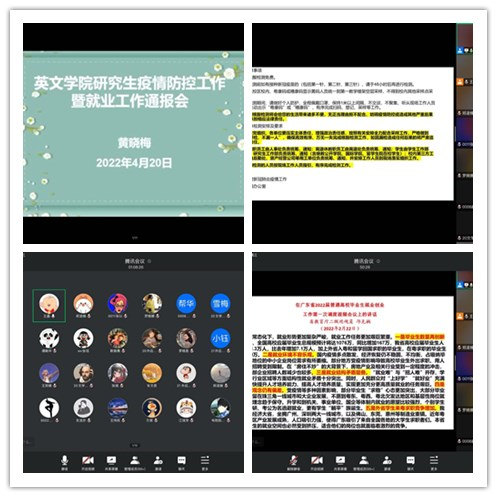 为进一步落实校园疫情防控安全举措,坚定师生抓紧校园疫情防控安全绳的决心、信心和恒心,扣好广州疫情防控全面清零的每一粒扣子,遵守疫情管控期间校园各项规章制度,强化疫情防控主体责任,2022年4月20日下午12:30至13:30,威尼斯WNS9778全体研究生通过线上平台参加全体研究生大会,大会由英文学院党委副书记黄晓梅主讲,研究生辅导员王晶老师主持。